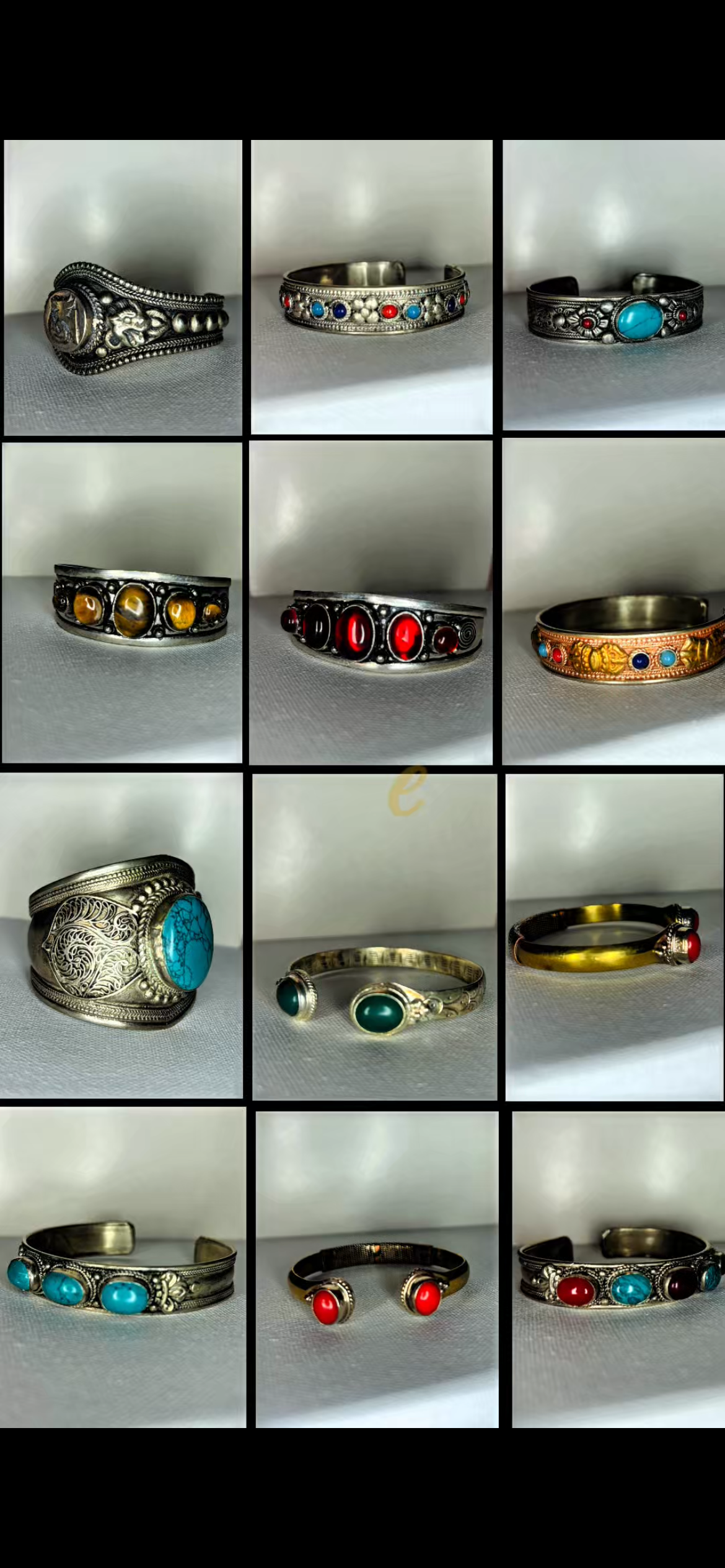 Healing stone on white metal bracelets