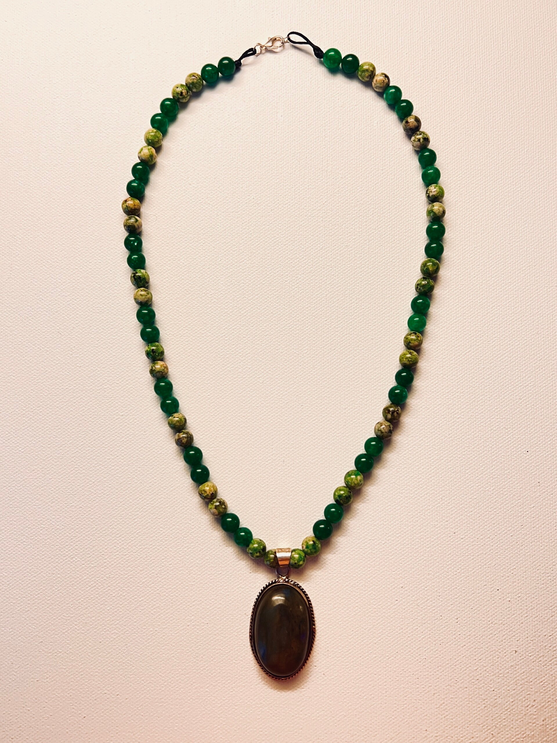 Zoisite and Malachite neckless with Labradorite Pendant.